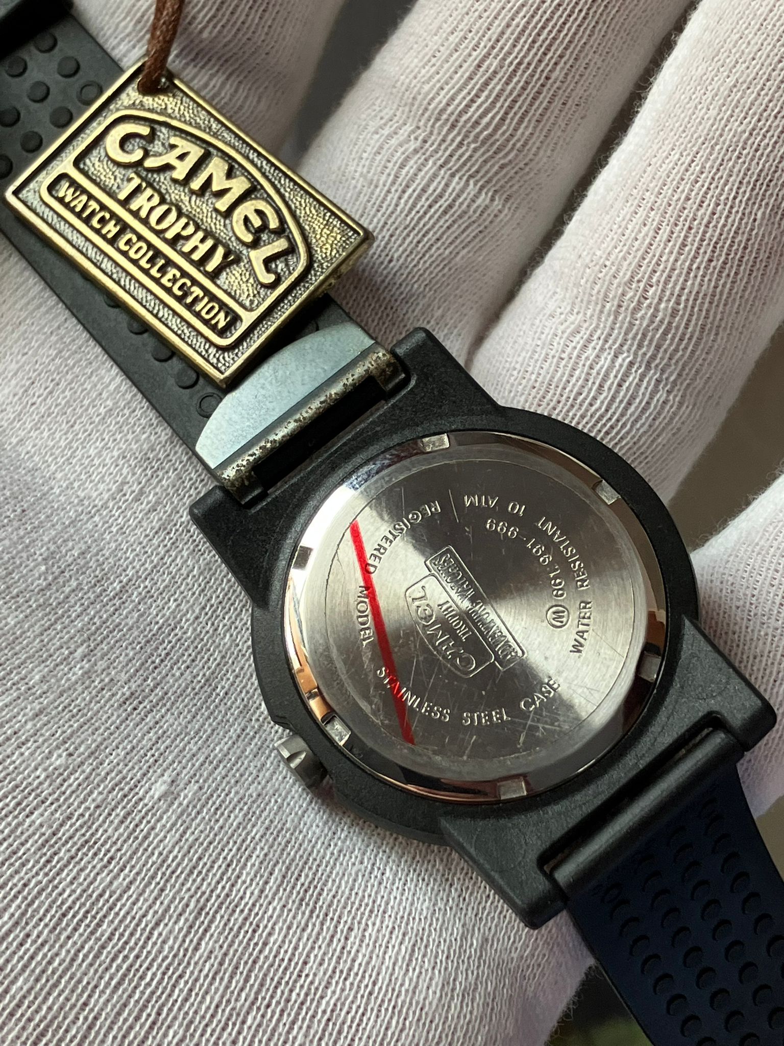 Reloj de hombre Camel Trophy, a estrenar, de antiguo stock de relojería sin uso. Mide 36,50 mm sin contar corona. Pila nueva, funciona correctamente. De colección, años 90/2000.