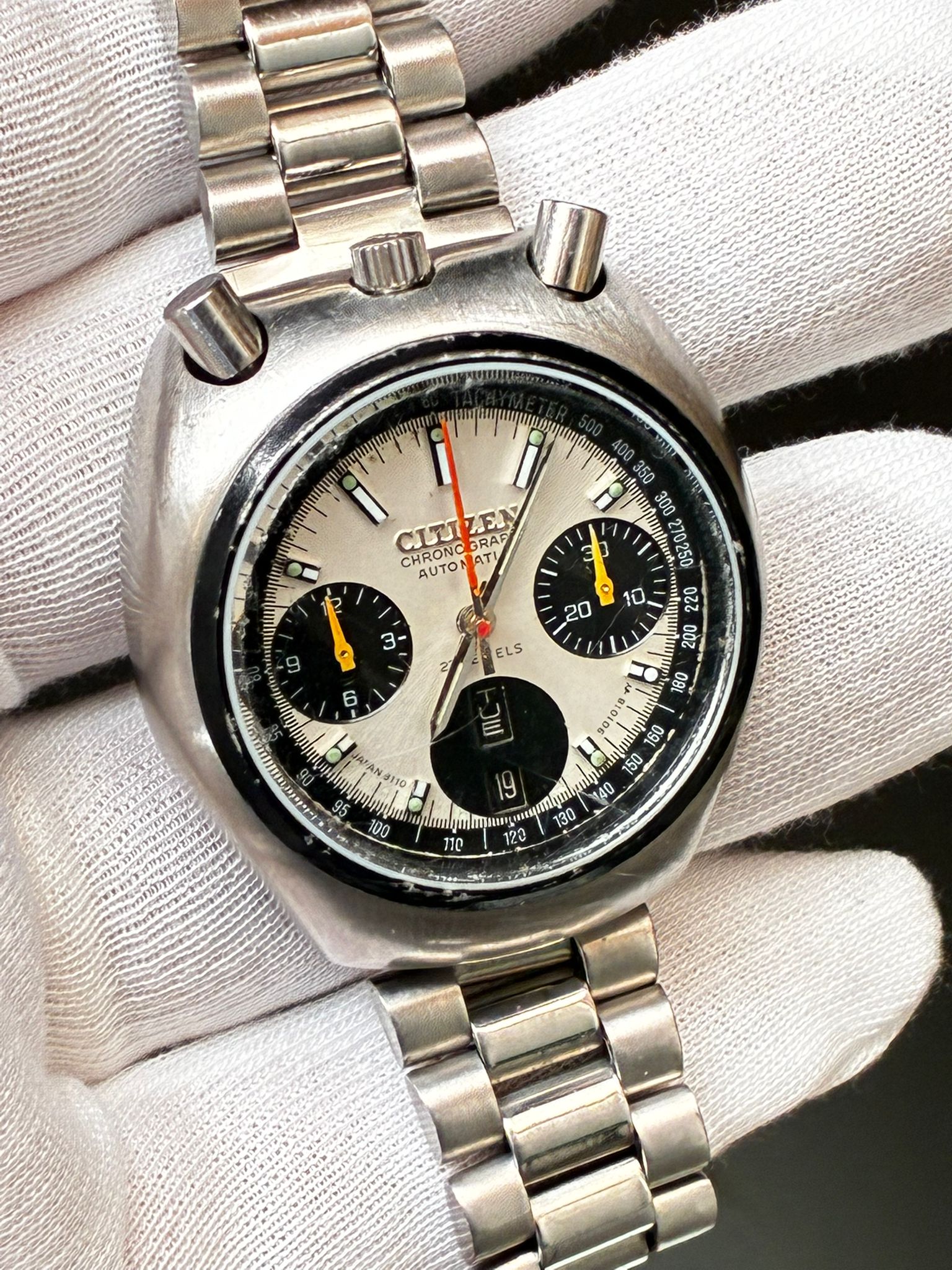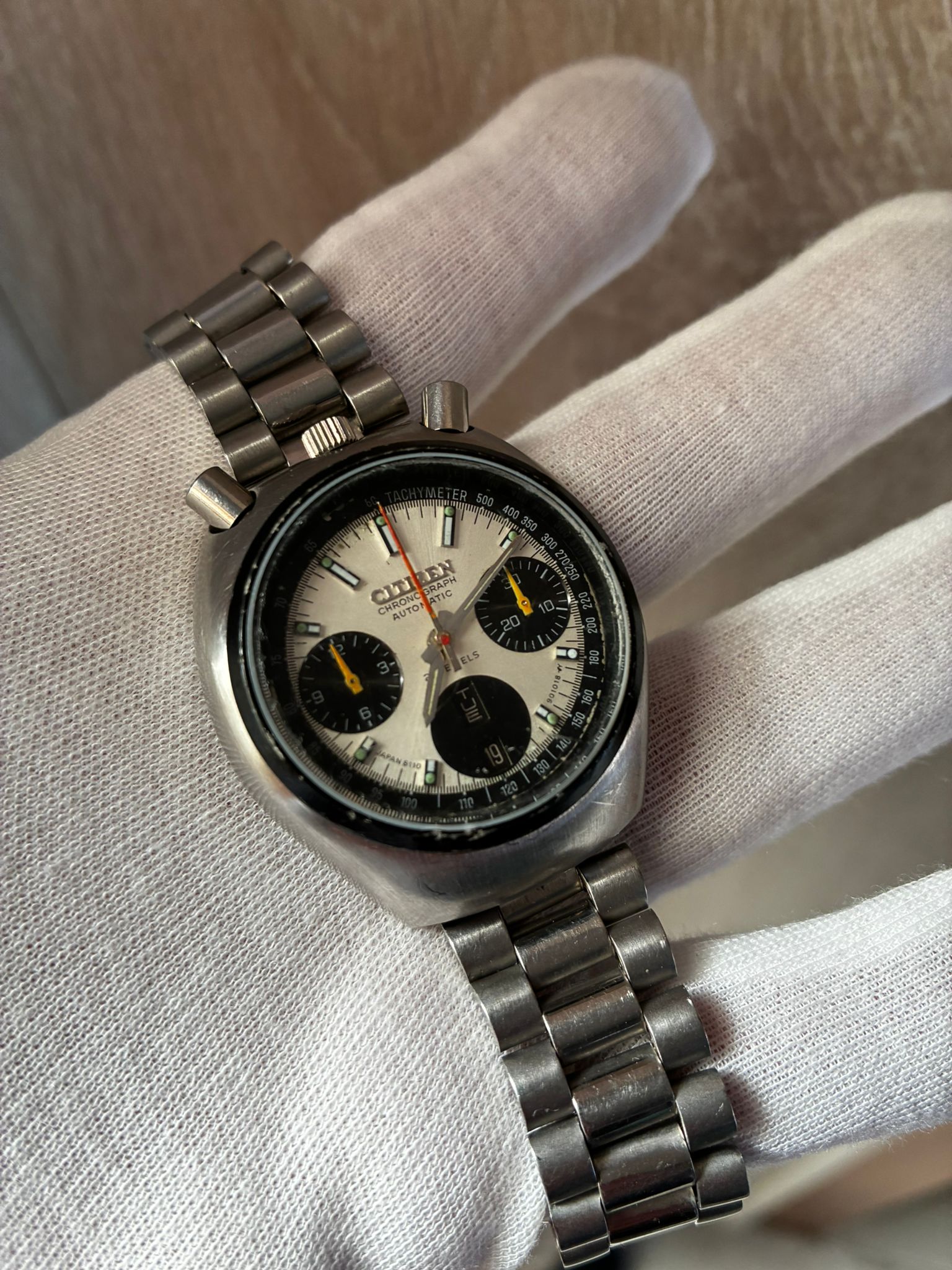 Reloj Citizen automático cronógrafo años 70 modelo BULHEAD , recién revisado de mecanismo, Armis genérico con cierre Citizen , funciona correctamente