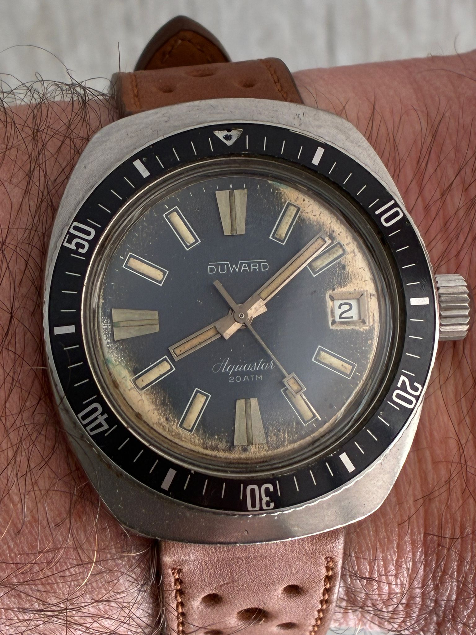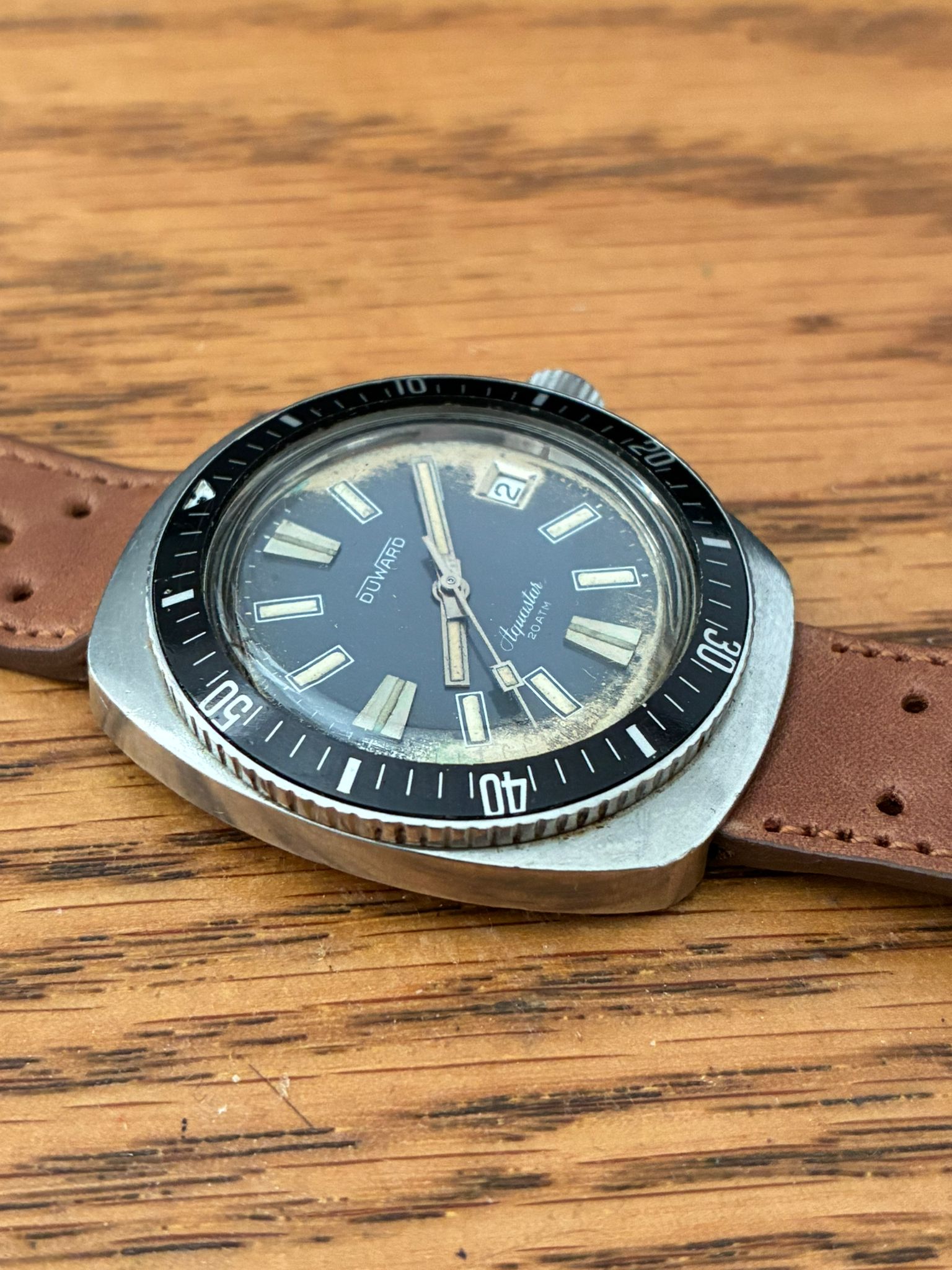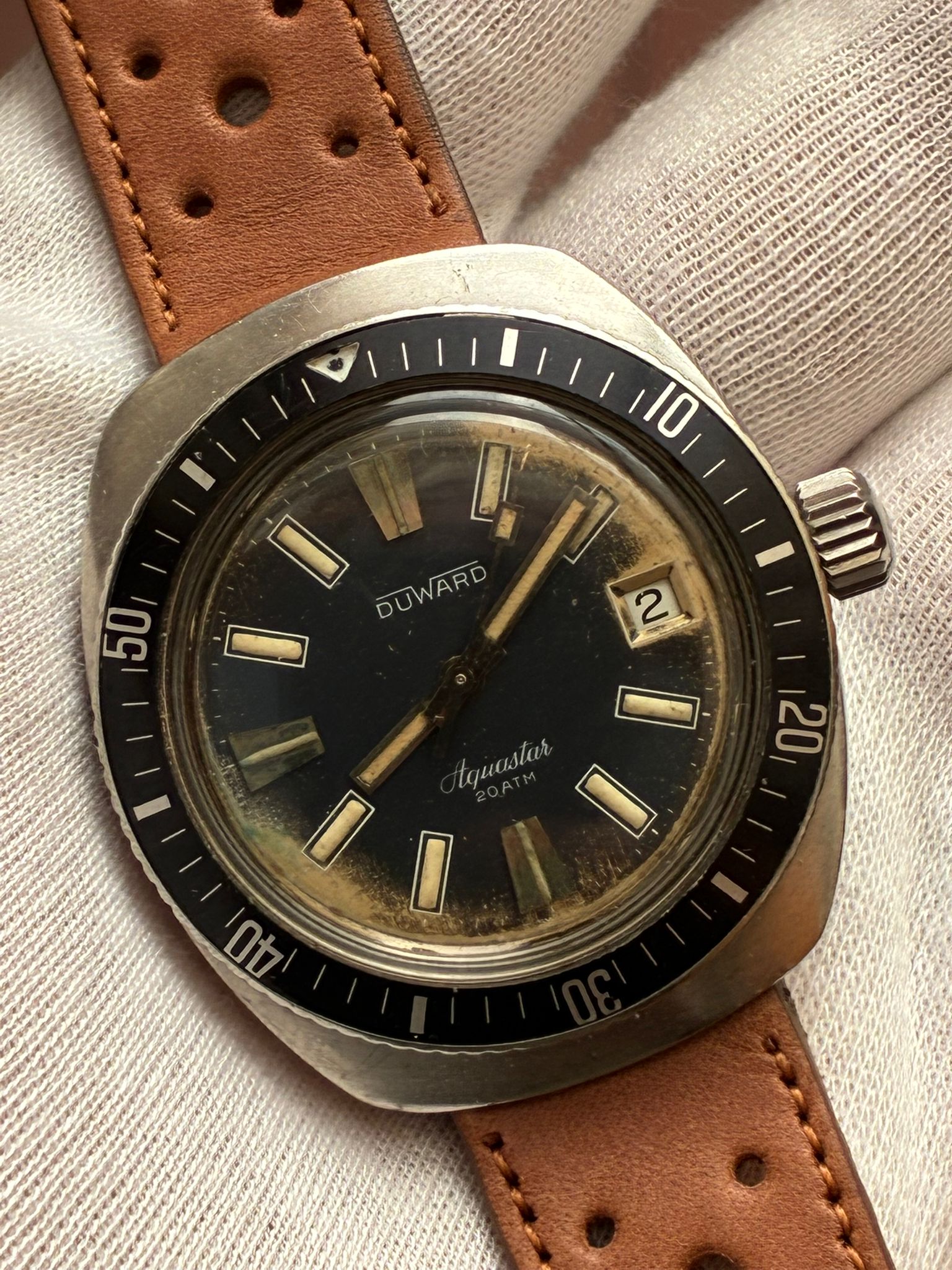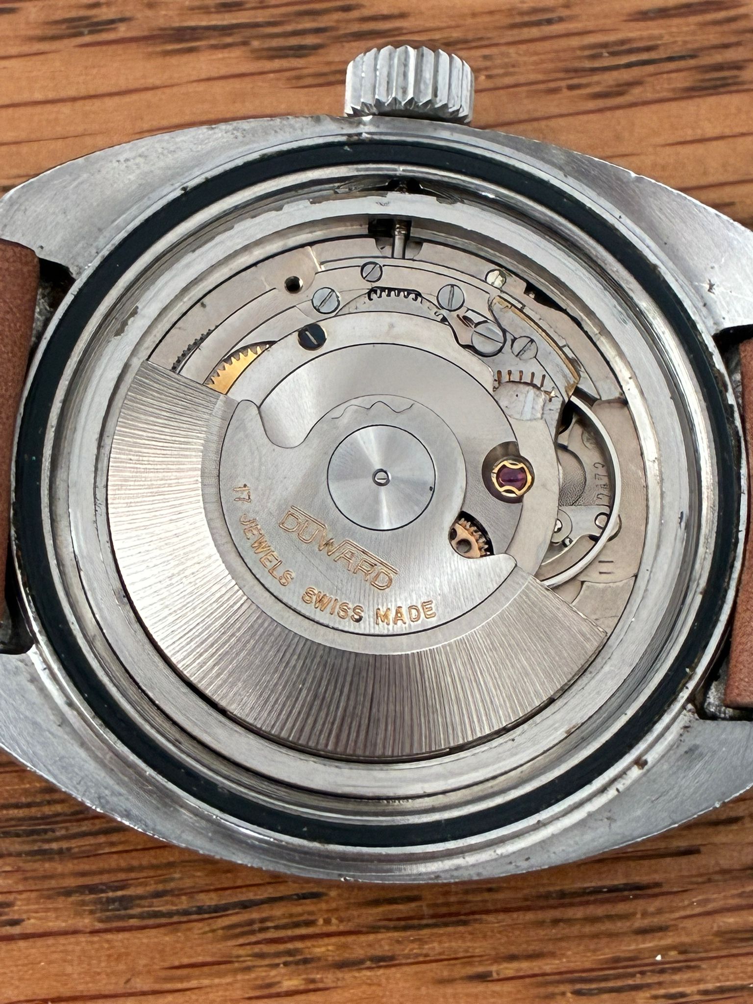 Reloj diver automático DUWARD aquastar 200 metros , caja de acero , bisel giratorio, monta calibre automático eta 2472, funciona correctamente, corona original firmada , correa a estrenar.