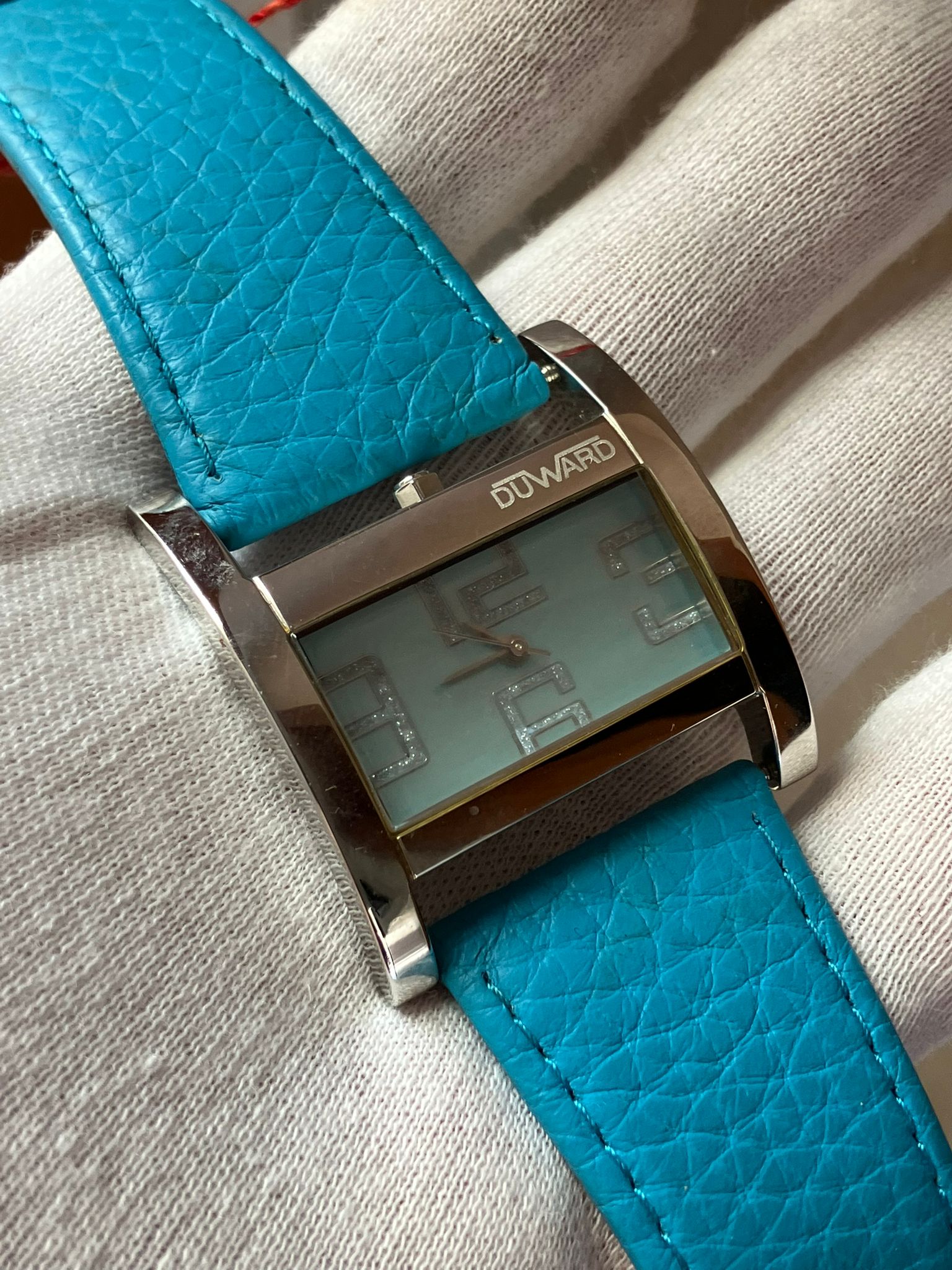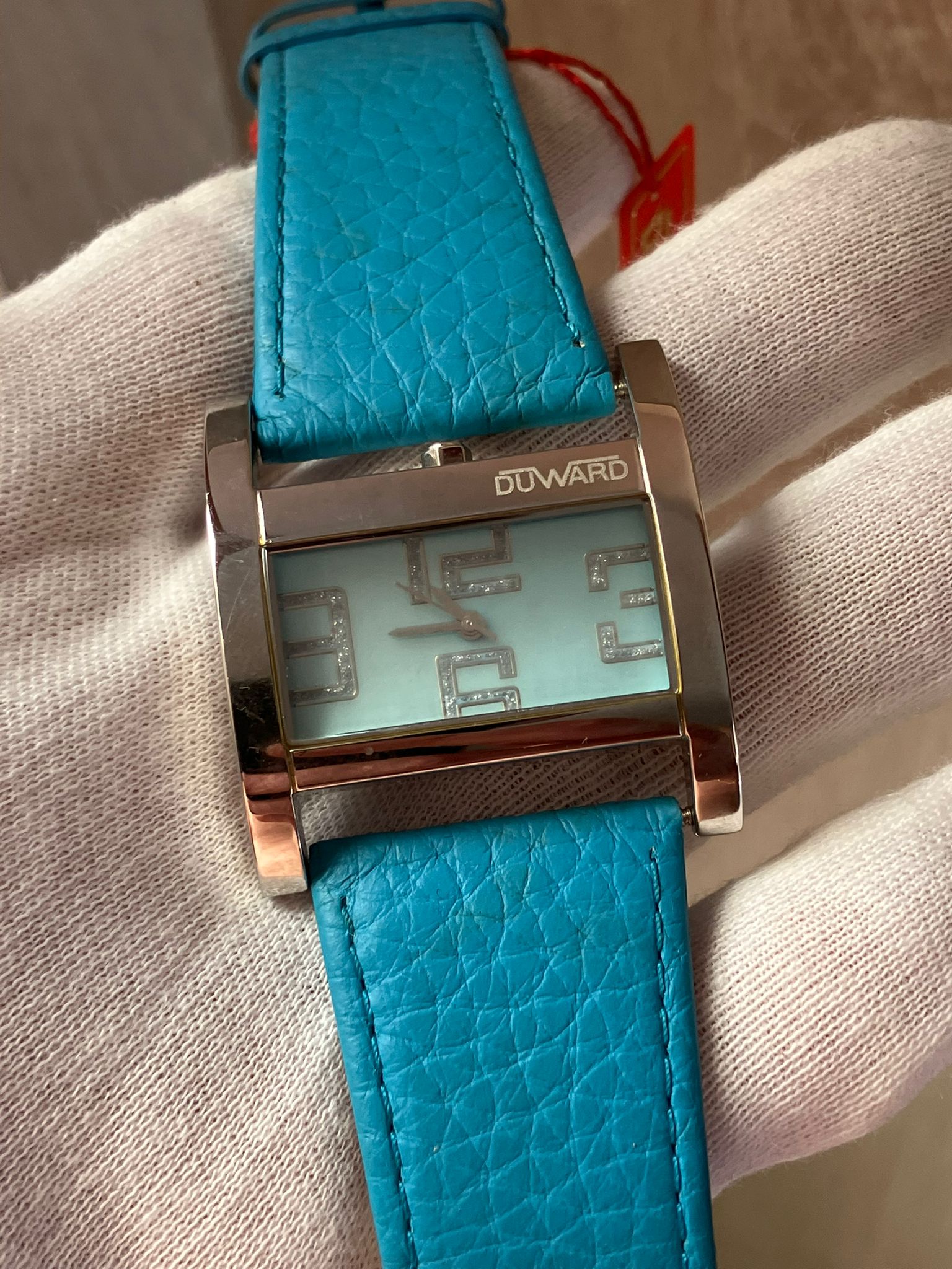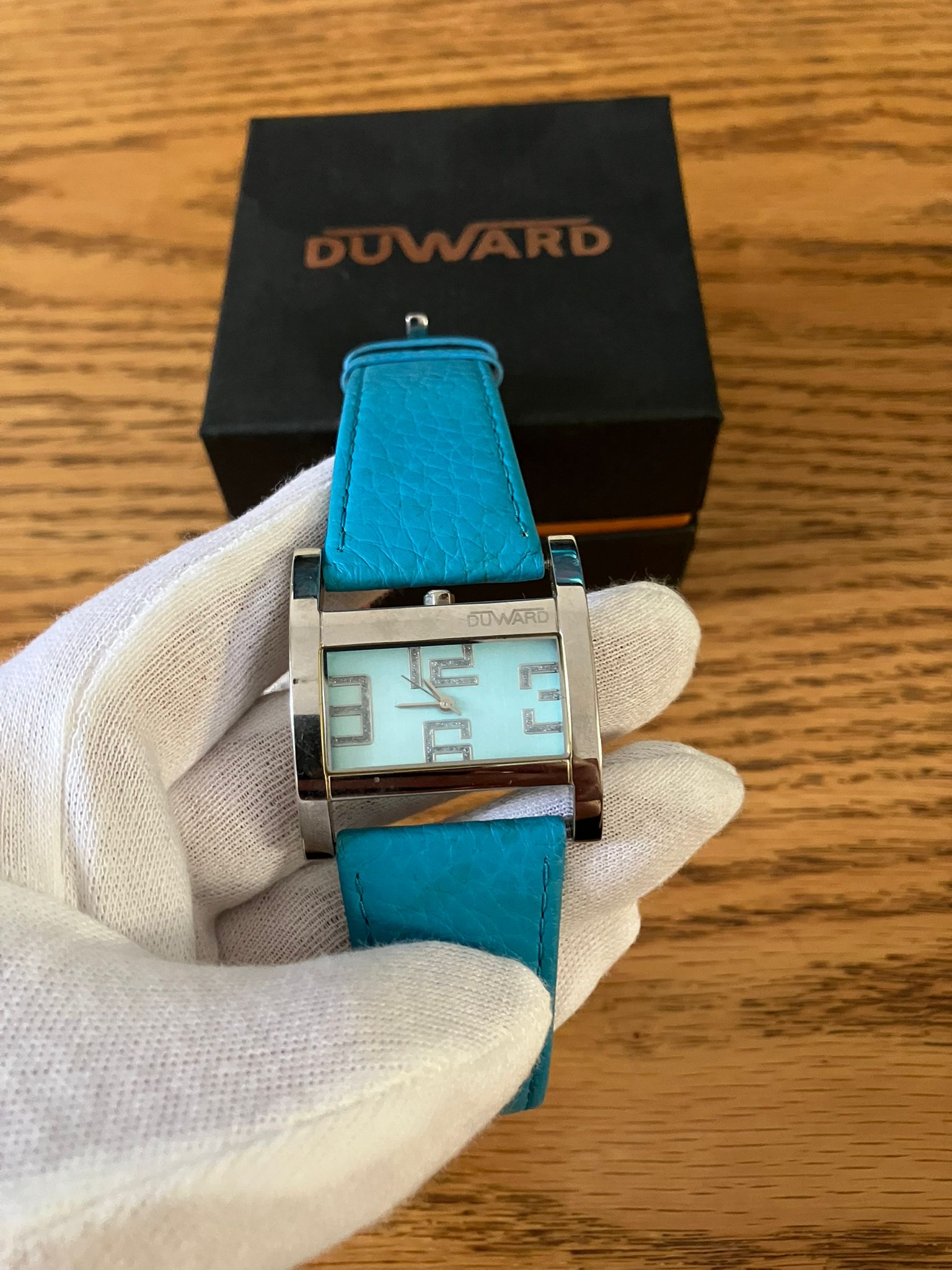 Reloj DUWARD de mujer con estuche y garantía sin sellar , por cierre de relojería, pila nueva funciona correctamente, mide 31 mm sin contar Corona