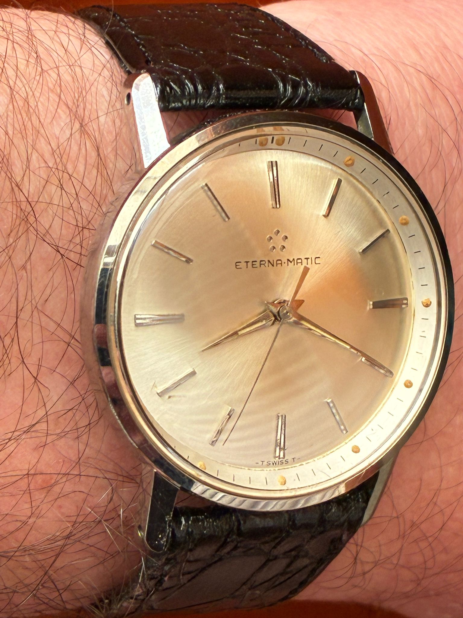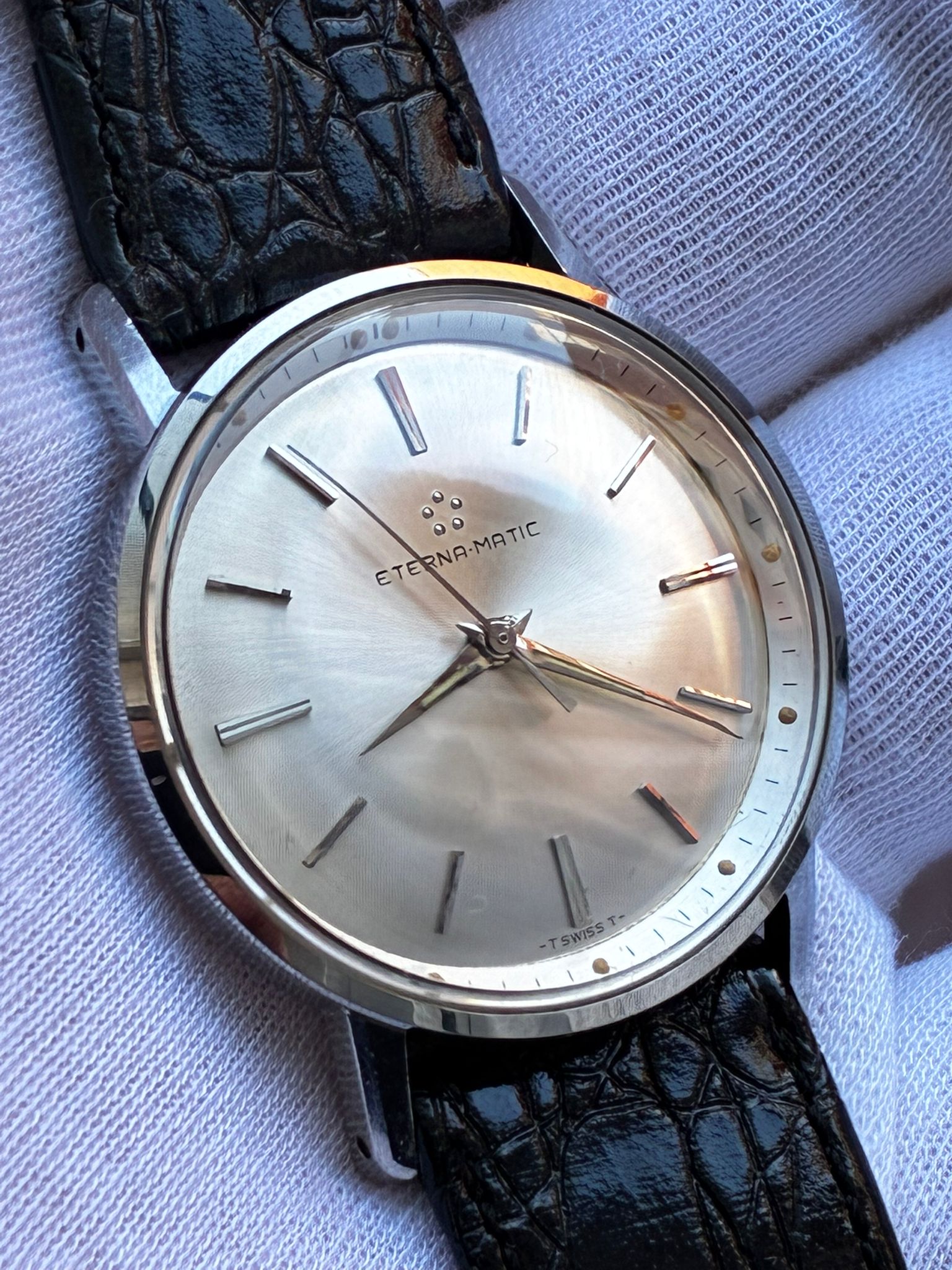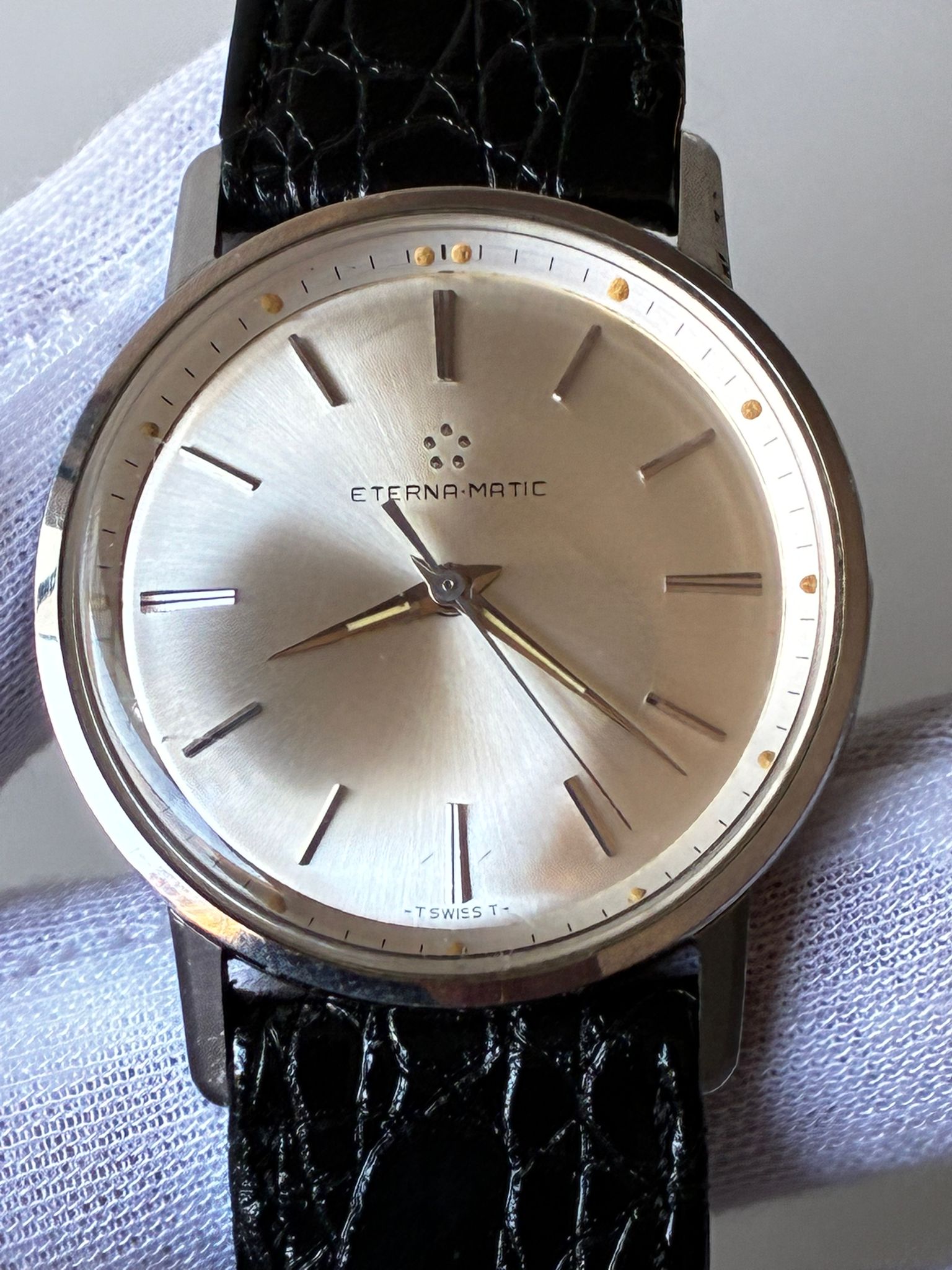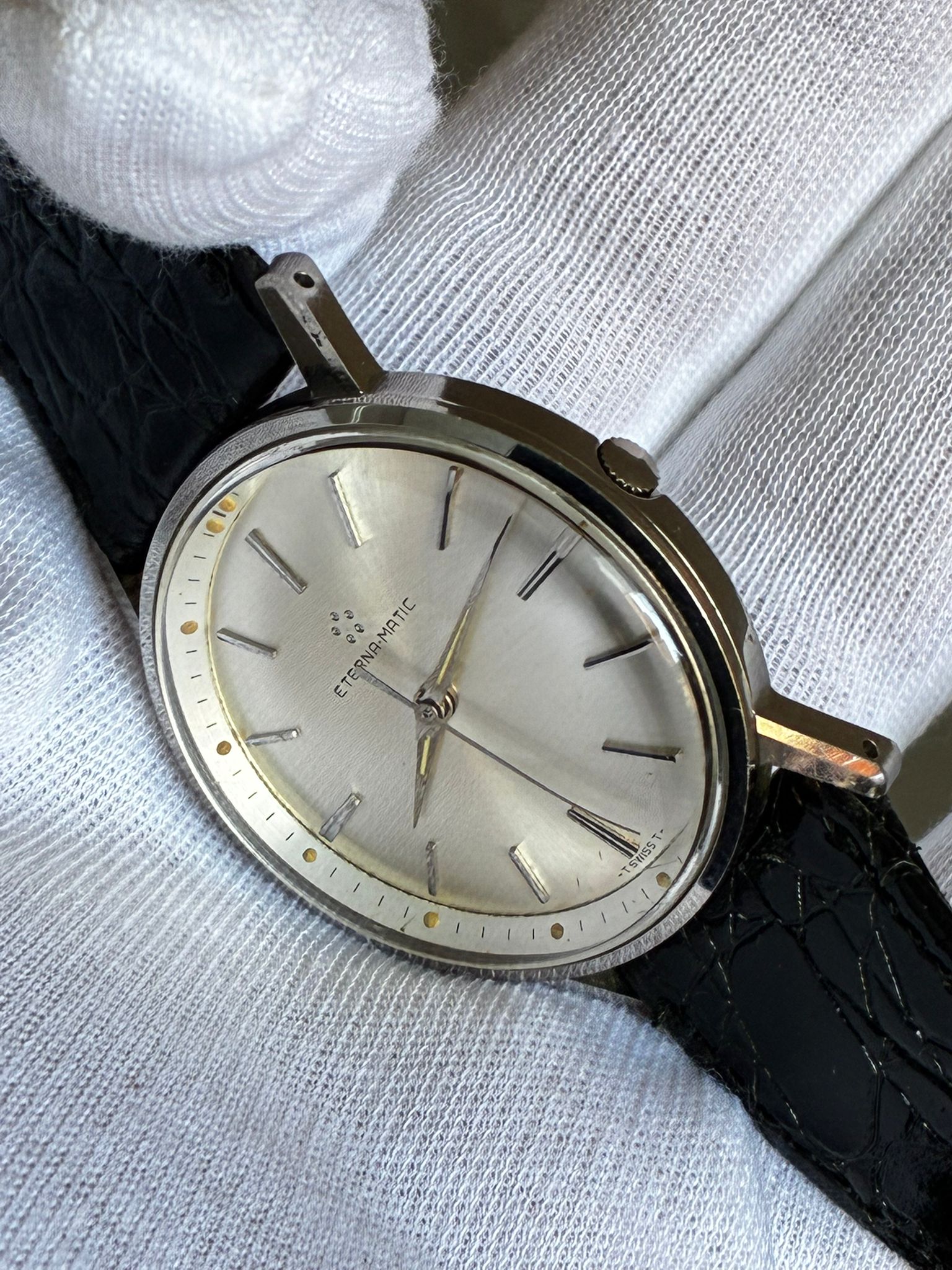 Reloj eterna MATIC automático, monta calibre 1412 UD, maquinon !! Funciona correctamente, años 70 estado de conservación de 8!!! Muy poco uso , correa a estrenar de nuestra tienda de correas, no verás otro en este estado de conservación