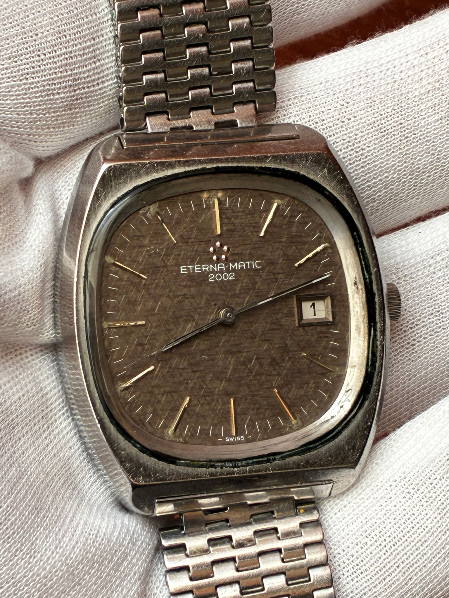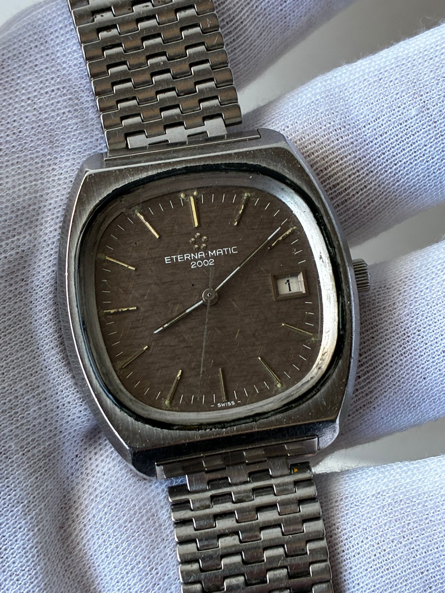 Reloj eterna MATIC automático modelo 2002, todo original 100×100, recién revisado de mecanismo, funciona correctamente monta el calibre automático ref 2824, corona firmada y preciosa correa NSA firmada, espectacular esfera chocolate