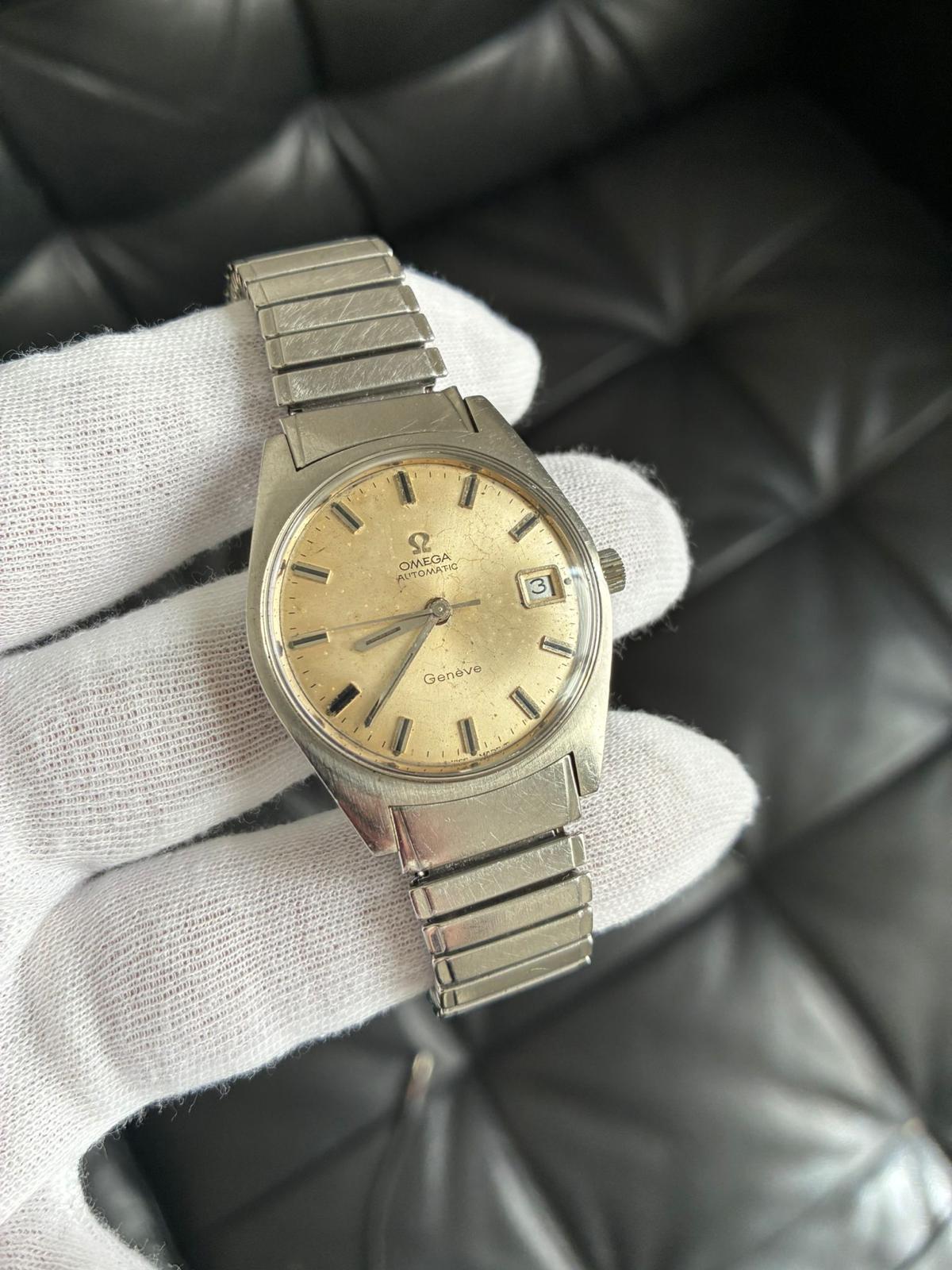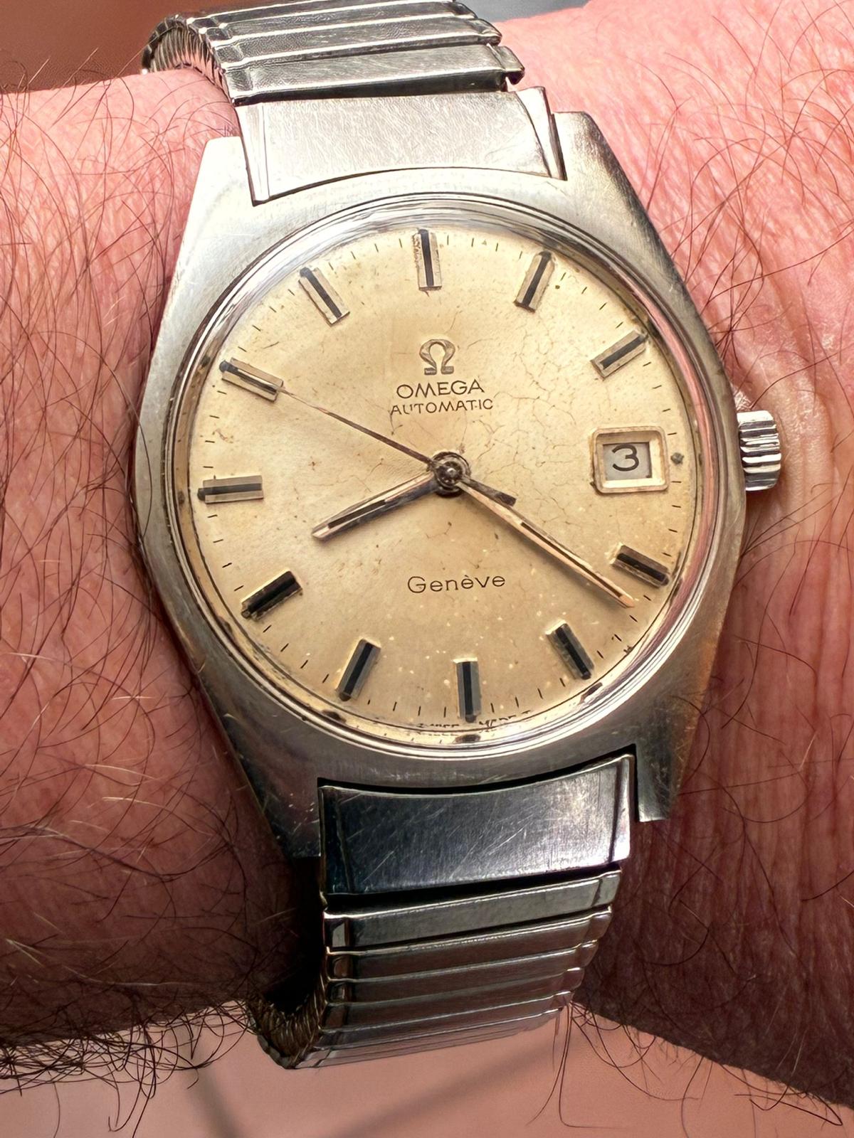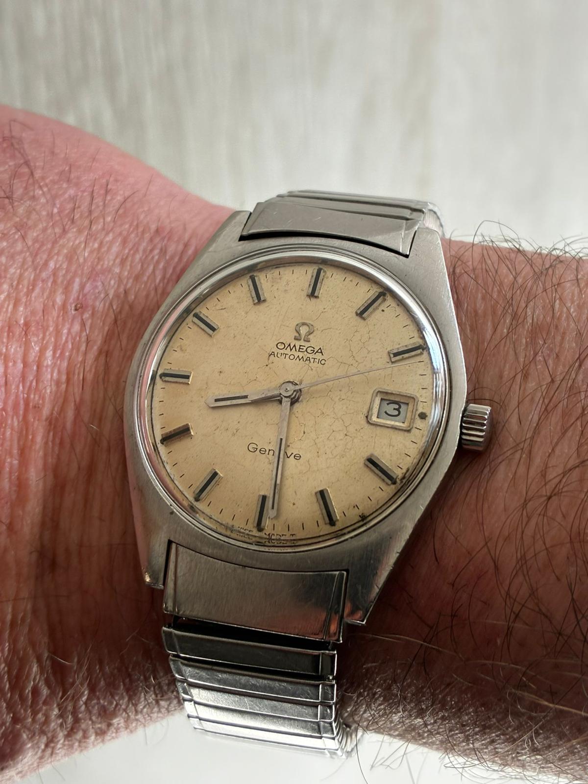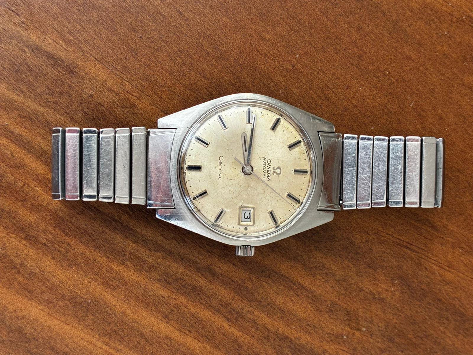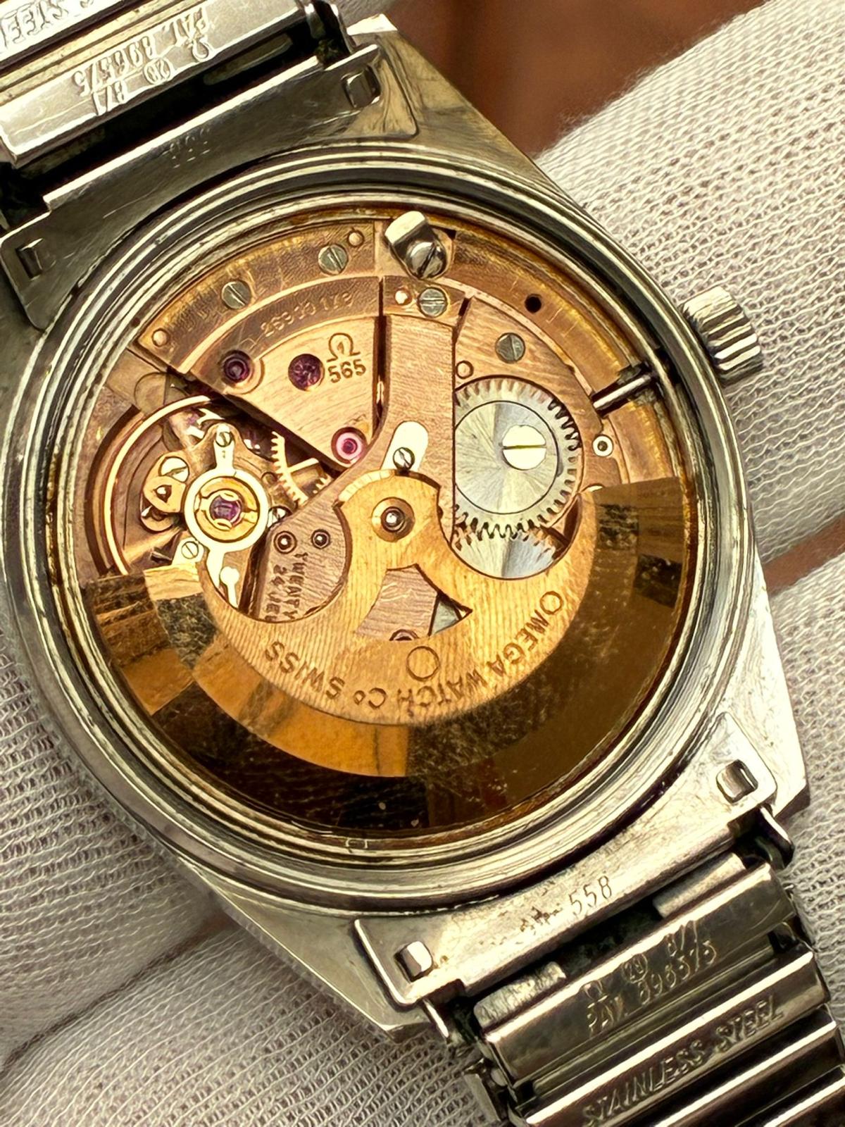 Reloj omega automático monta calibre 565 con pase rápido . Lleva un raro armis extensible original de omega , mide 34.46 mm sin contar corona, funciona correctamente, armas extra largo