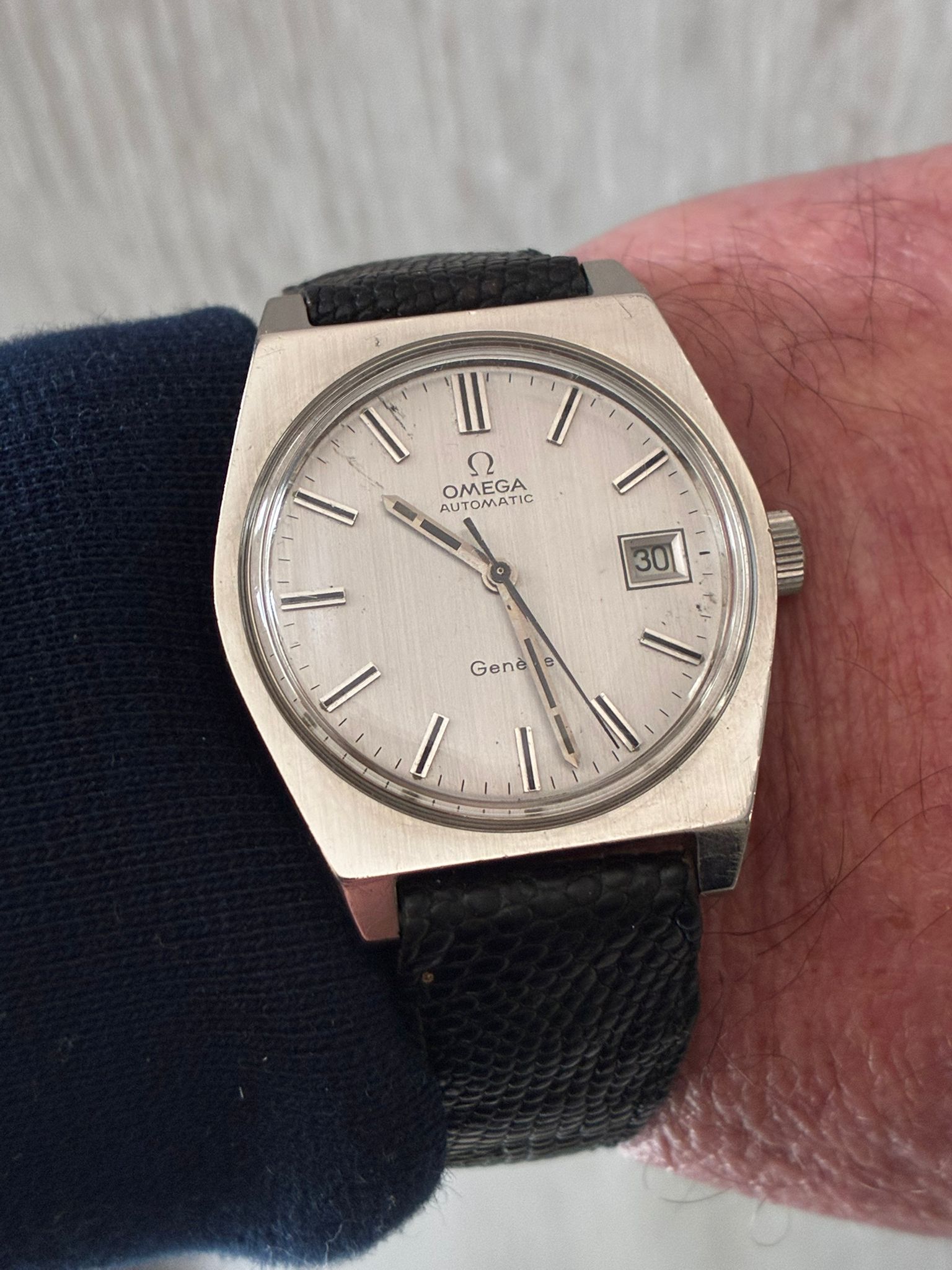 Reloj omega automático años 70 modelo geneve, con correa y cierre original de omega , corona firmada, recién revisado de mecanismo por maestro relojero funcionando correctamente, plexi a estrenar, monta calibre 1481, mide 35 mm sin contar Corona