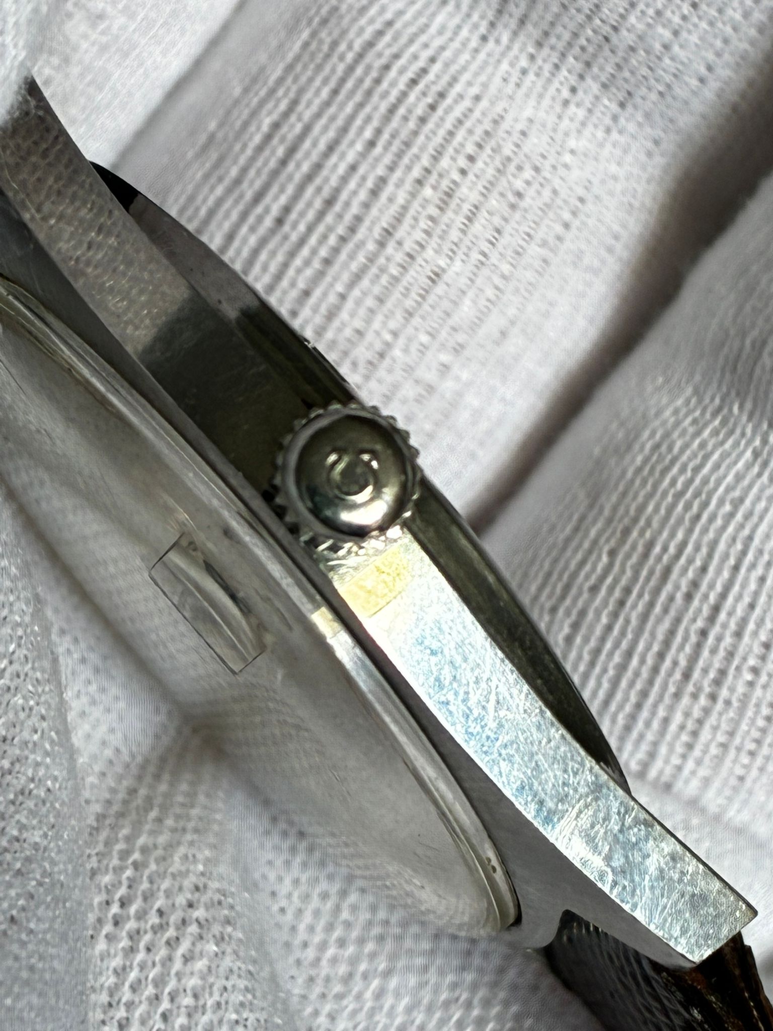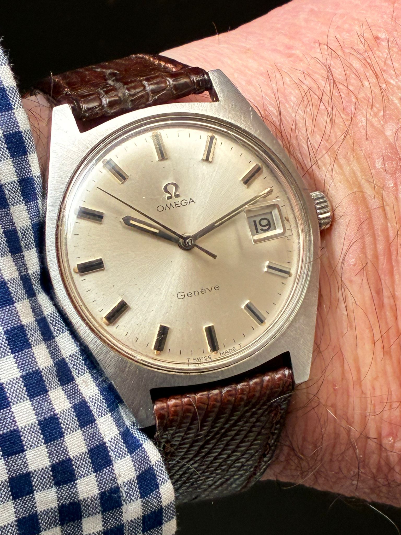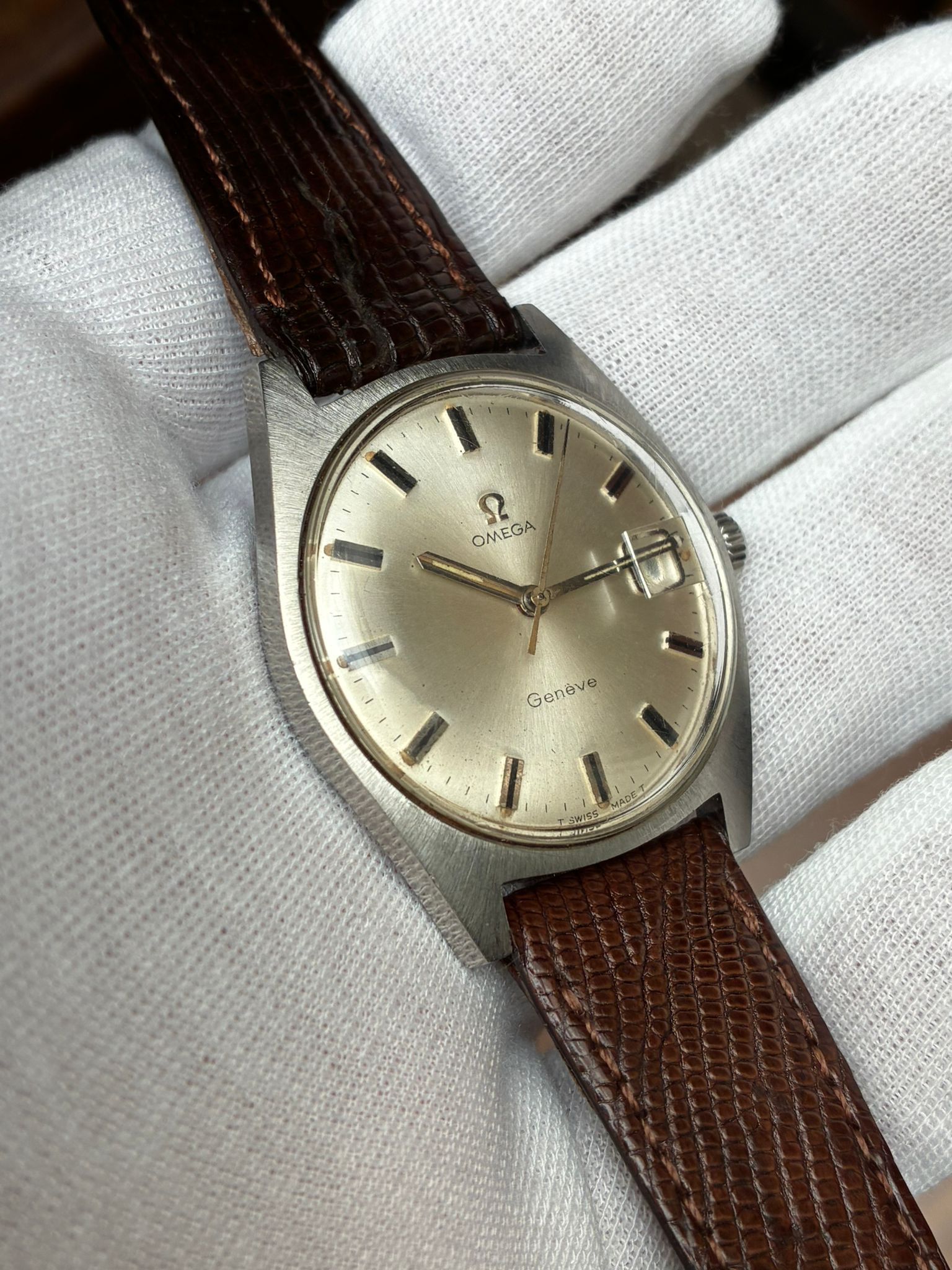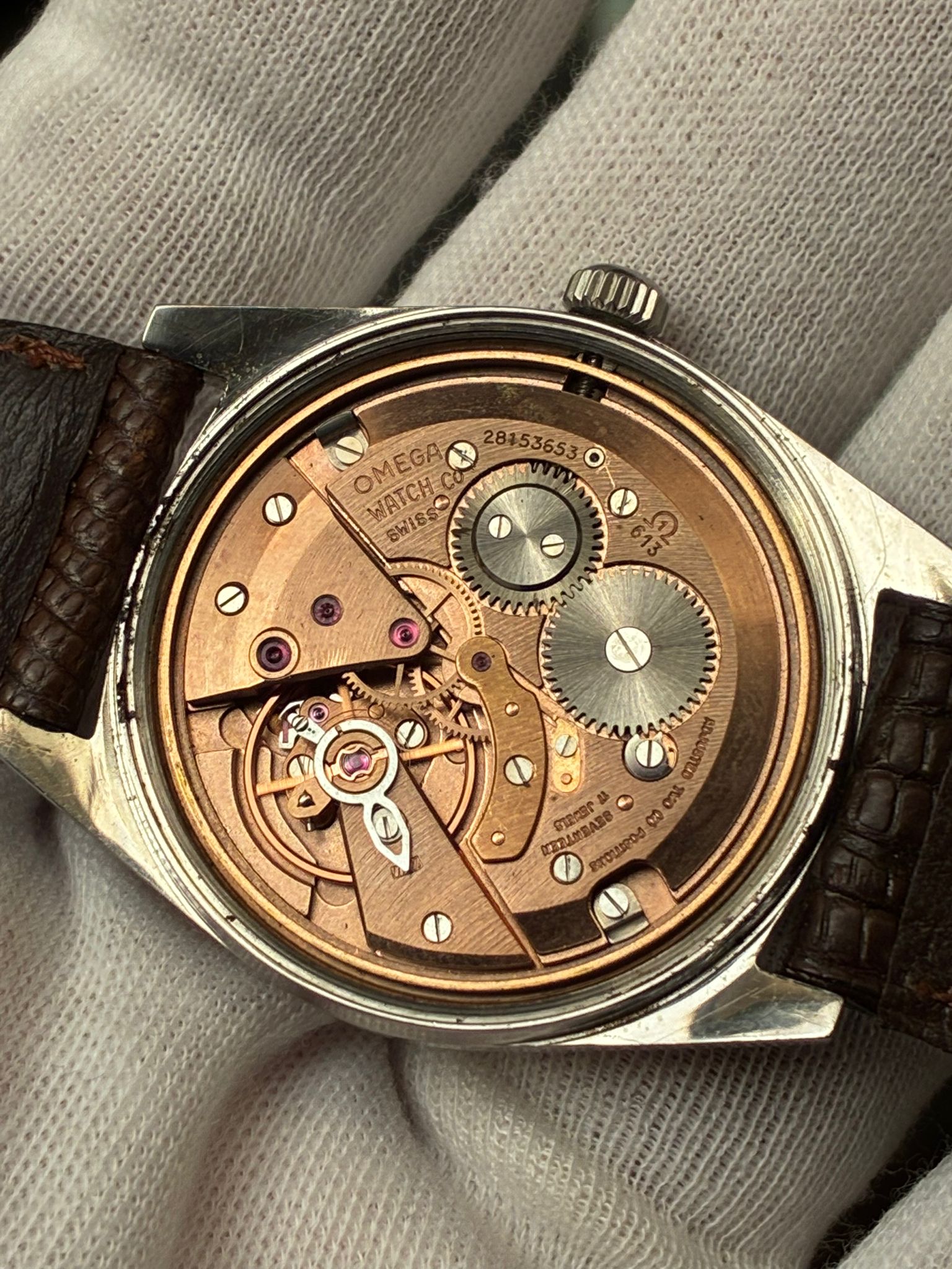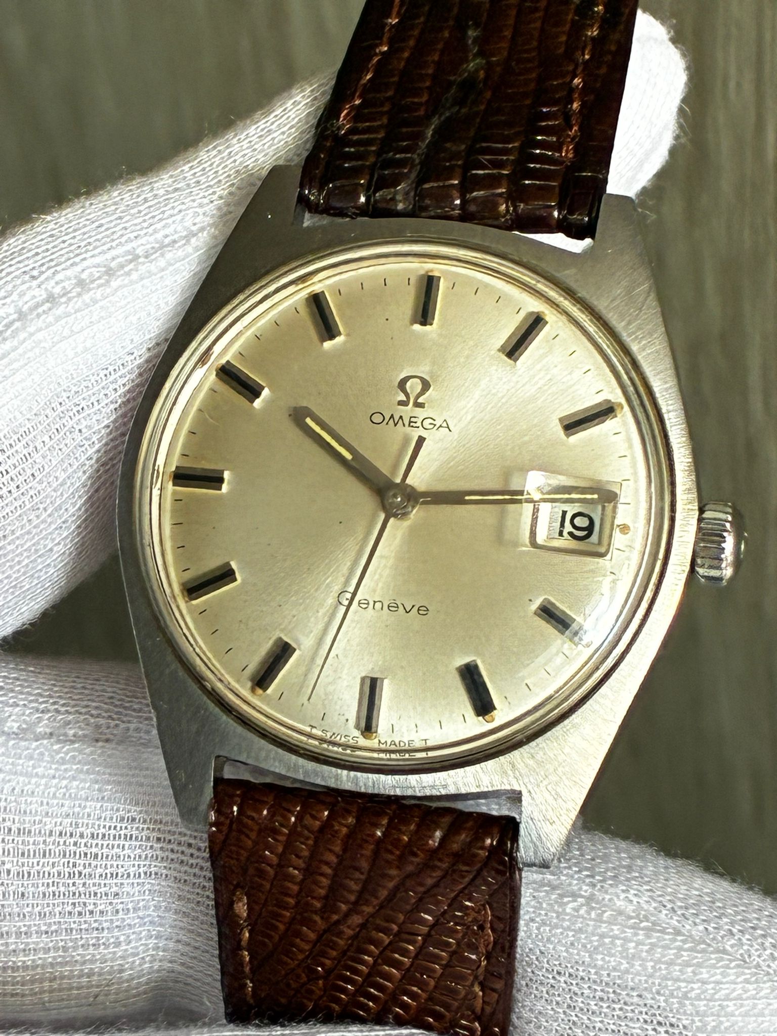 Reloj omega de acuerda geneve calibre 613, corona omega , plexiglas a estrenar, correa piel de lagarto a estrenar de color café , funcionando correctamente con calendario