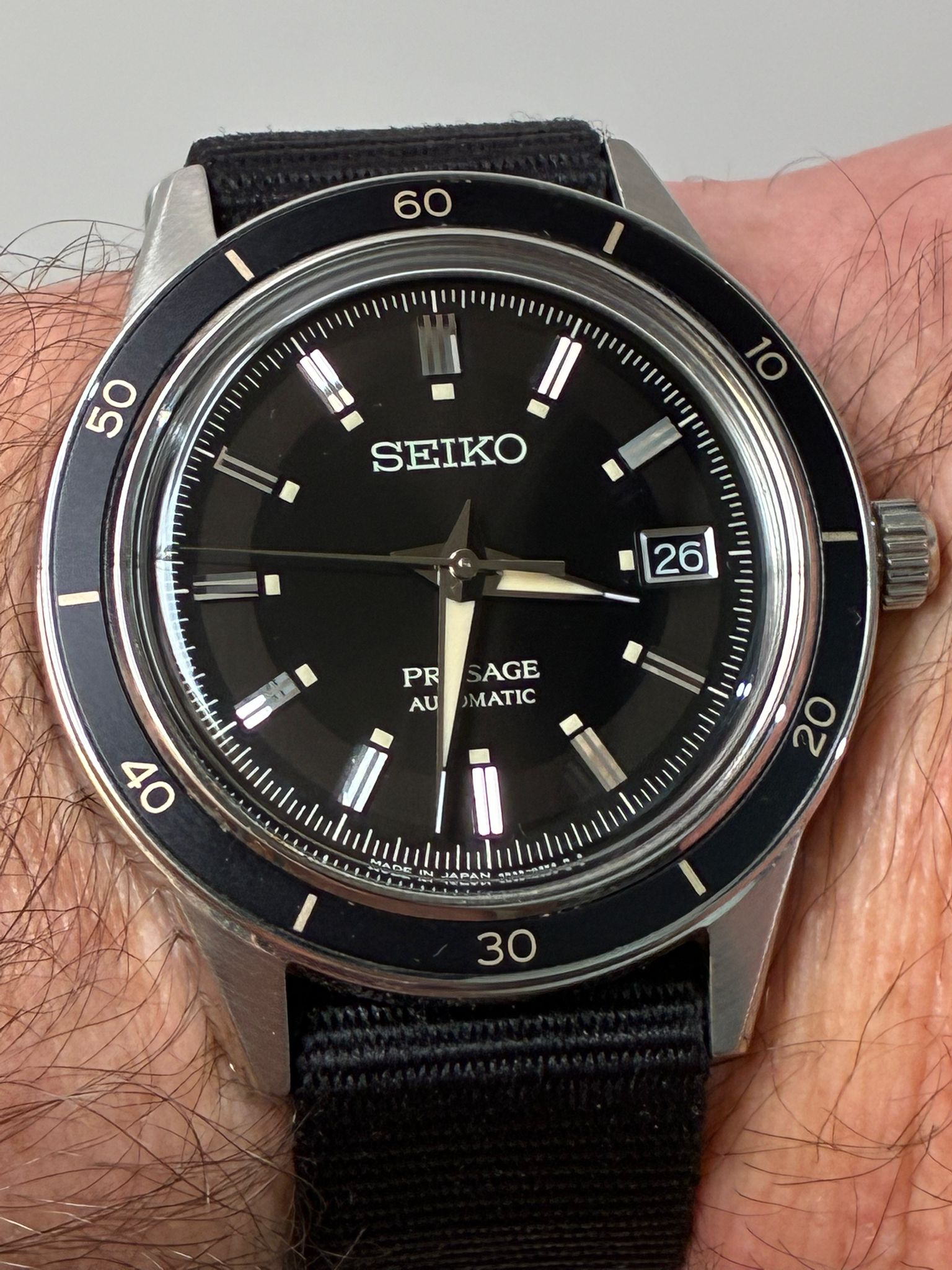 Reloj japonés automático Seiko modelo pressage automático, muy poco uso , funciona correctamente, esfera negra muy elegante se entrega con su correspondiente correo original nato , mide 41 mm sin contar Corona