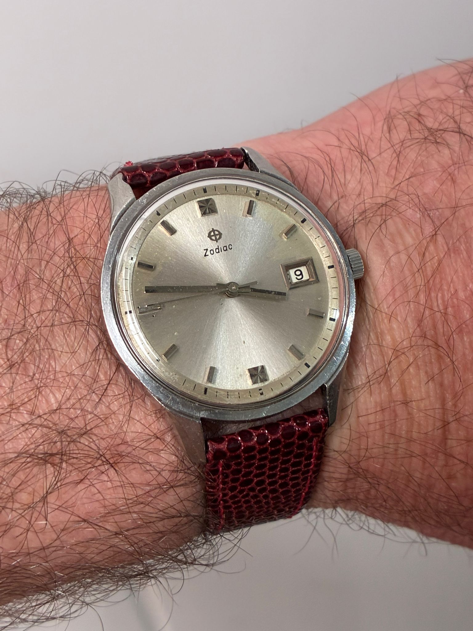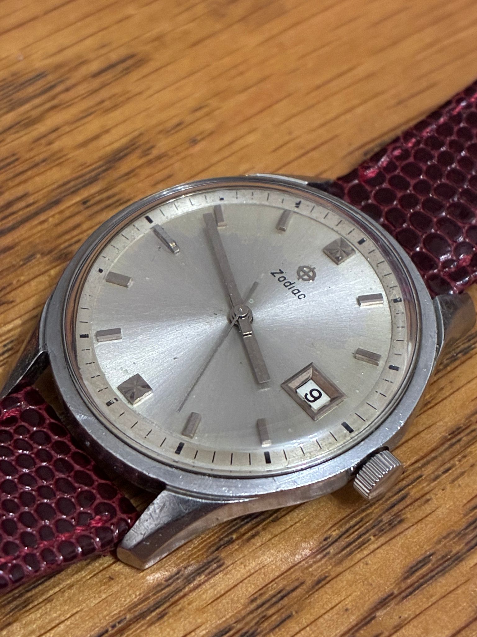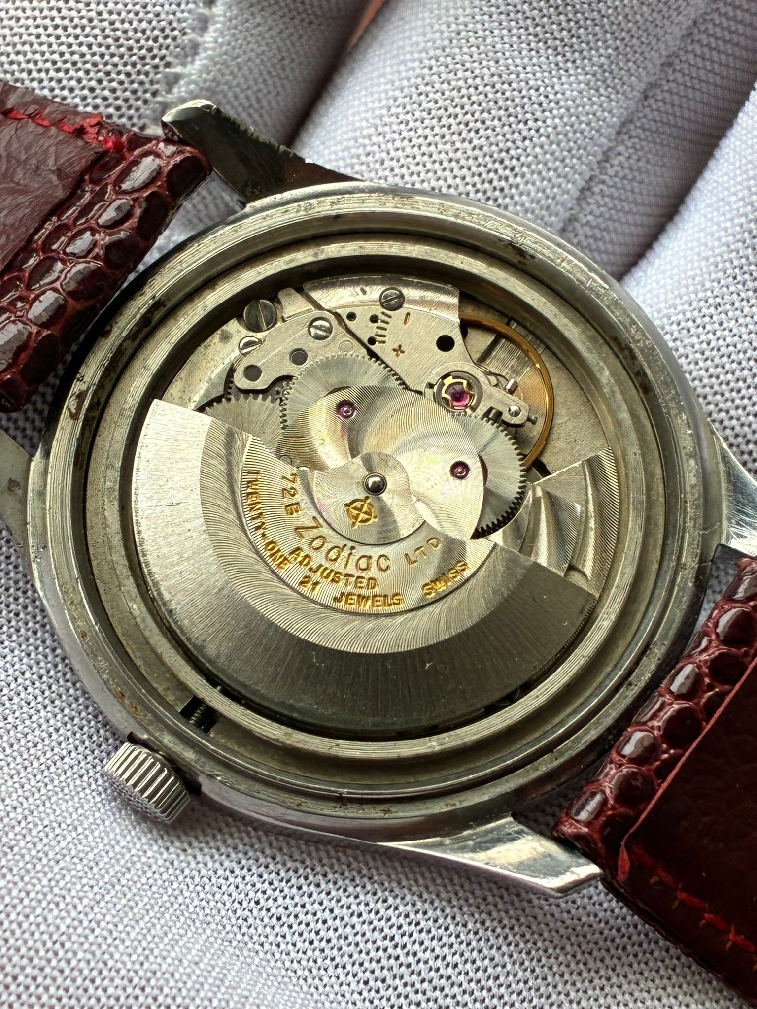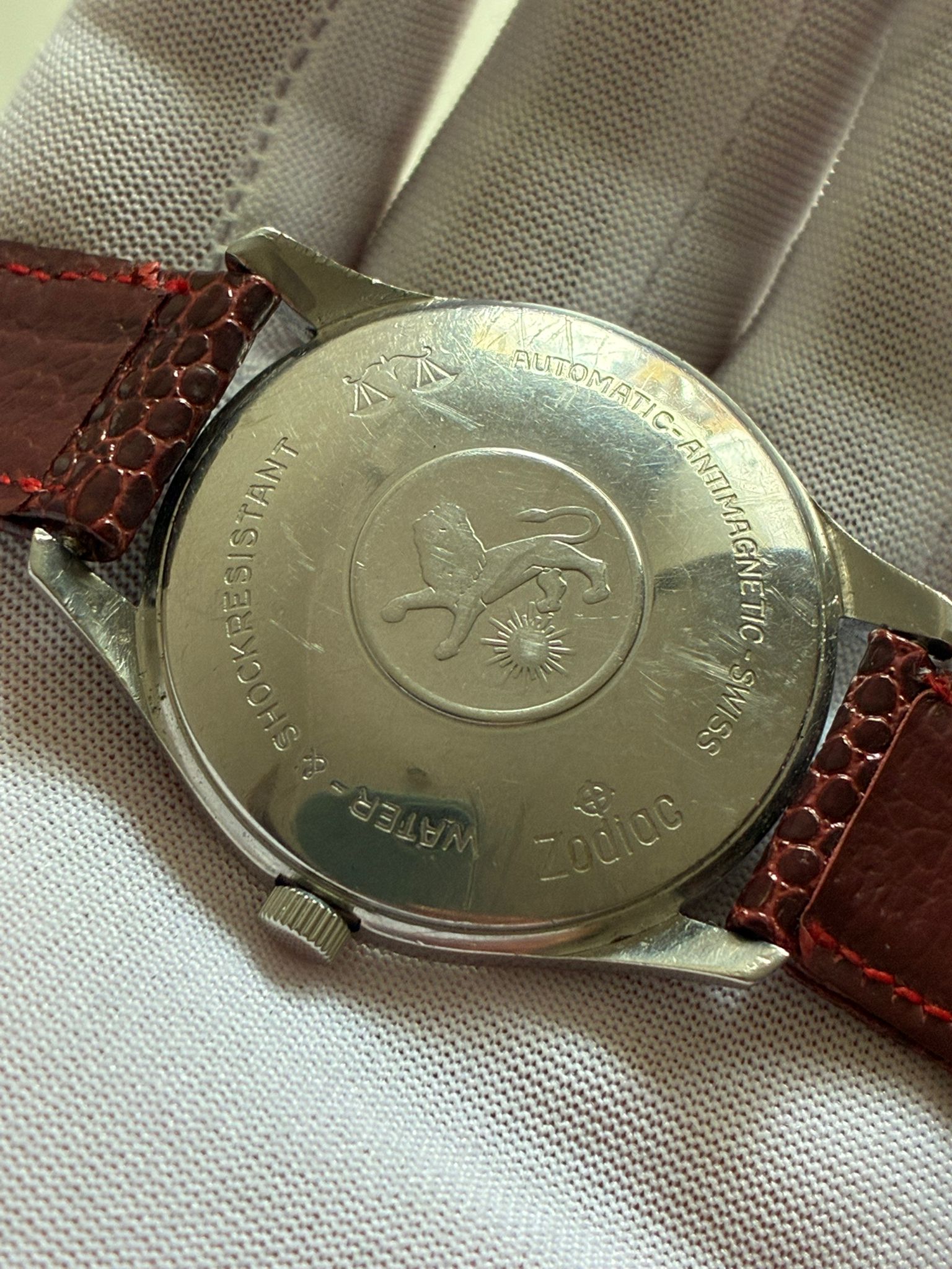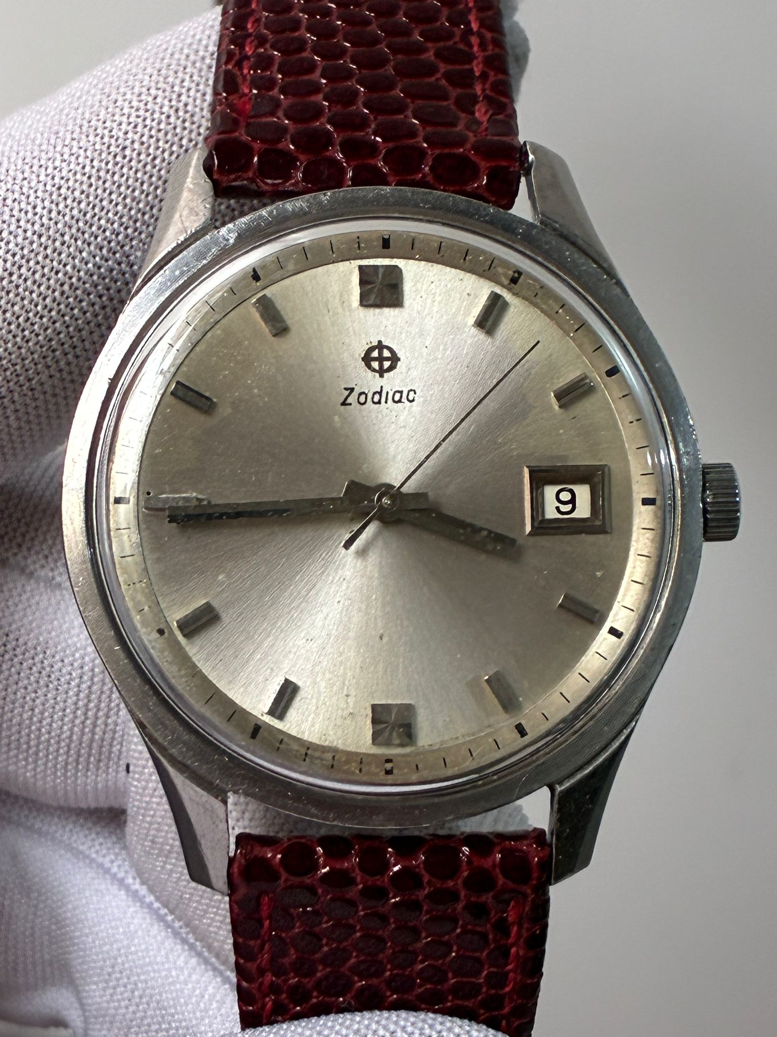 Reloj Zodíac automático caja de acero, años 70 funciona correctamente, mide 37 mm sin contar corona, PLEXIGLAS original y correa a estrenar de nuestra tienda